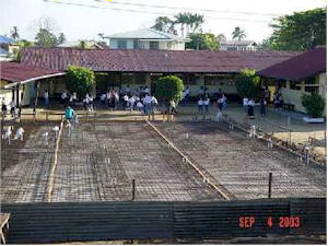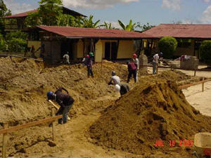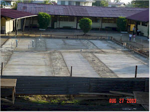 In the pictures below, a base floor is laid for the foundations upon which steel