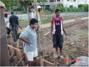 old days we mixed cement manually, and wheelbarrowed it to the place